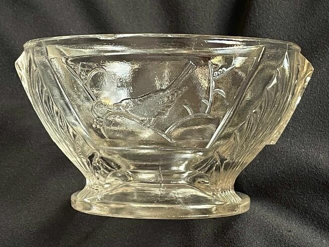 Dzień dobry Państwu. Oferuję do sprzedaży stara cukiernicę z czasów PRL-u. Szkło prasowane, grube. Motyw ptaków. ...