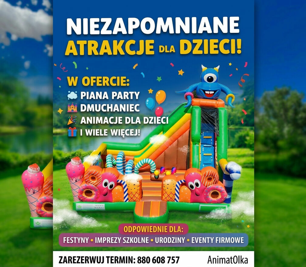 Niezapomniane atrakcje dla dzieci – Dmuchańce, Piana Party, Animacje!Szukasz 'efektu WOW' na swoim wydarzeniu? Niezależnie czy to wielki festyn, urodziny, czy impreza firmowa – stawiamy na rozrywkę, która kradnie show i buduje najlepsze wspomnienia