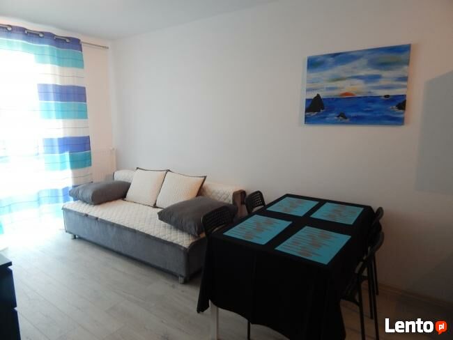 Apartament o pow. 34 m2 – max dla 4 osób. Kameralny apartament składający się z pokoju dziennego łączonego z funkcjonalnym aneksem kuchennym, sypialni, łazienki i balkonu. Usytuowany na III piętrze w nowo wybudowanym budynku. Aneks kuchenny zabudowany: lodówka, płyta grzewcza, niezbędne naczynia, kuchenka mikrofalowa, stół w formie blatu łączonego z resztą zabudowy kuchennej i 4 krzesła. Wyposażenie części pokojowej stanowi 2 osobowa kanapa, ława, komoda z TV oraz pufy. W sypialni umieszczono dwuosobowe łóżko, stoliki nocne oraz wbudowaną szafę. Łazienka: wanna ze szklaną osłoną tworzącą formę kabiny natryskowej, umywalka i wc. Dodatkowe wyposażenie apartamentu stanowi pralka, żelazko, deska do prasowania, suszarka do bielizny, leżaki plażowe, meble balkonowe. Użytkownicy internetu mają dostęp do sieci bezprzewodowej bezpośrednio w apartamencie. Apartament utrzymany w jasnych tonacjach kolorystycznych. W bezpośrednim sąsiedztwie znajduje się drugi apartament dwupokojowy. Jest to propozycja dla rodziny bądź grona znajomych chcących wypoczywać w tej samej lokalizacji. Do dyspozycji zmotoryzowanych Gości jest także stanowisko garażowe, znajdujące się w przyziemiu budynku apartamentowego. Osiedle Bursztynowe, na którym znajduje się apartament cechuje dogodna lokalizacja _ niedaleka odległość do morza i piaszczystej plaży oraz łatwy dostęp do centrum miasta. W bliskiej okolicy znajduje się port rybacki, port jachtowy „Marina Solna”, kompleks sportowy z basenem, stadion.W pobliskim hotelu Magnolia goście apartamentu mogą korzystać z zabiegów SPA, usług kosmetycznych, basenu, sauny, siłowni oraz gastronomii. Na podstawie karty rabatowej otrzymują 10% rabatu. Przez pobliski park nadmorski wiodą ścieżki rowerowe w kierunku Grzybowa i Dźwirzyna.Wiecej informacji na www.apartamentinkolobrzeg.pl