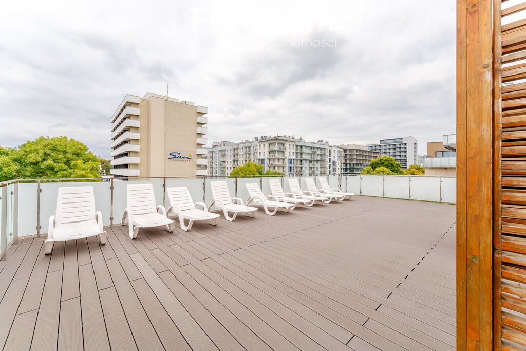 fitness, taras słoneczny na dachu z leżakami oraz rowerownia. Obiekt