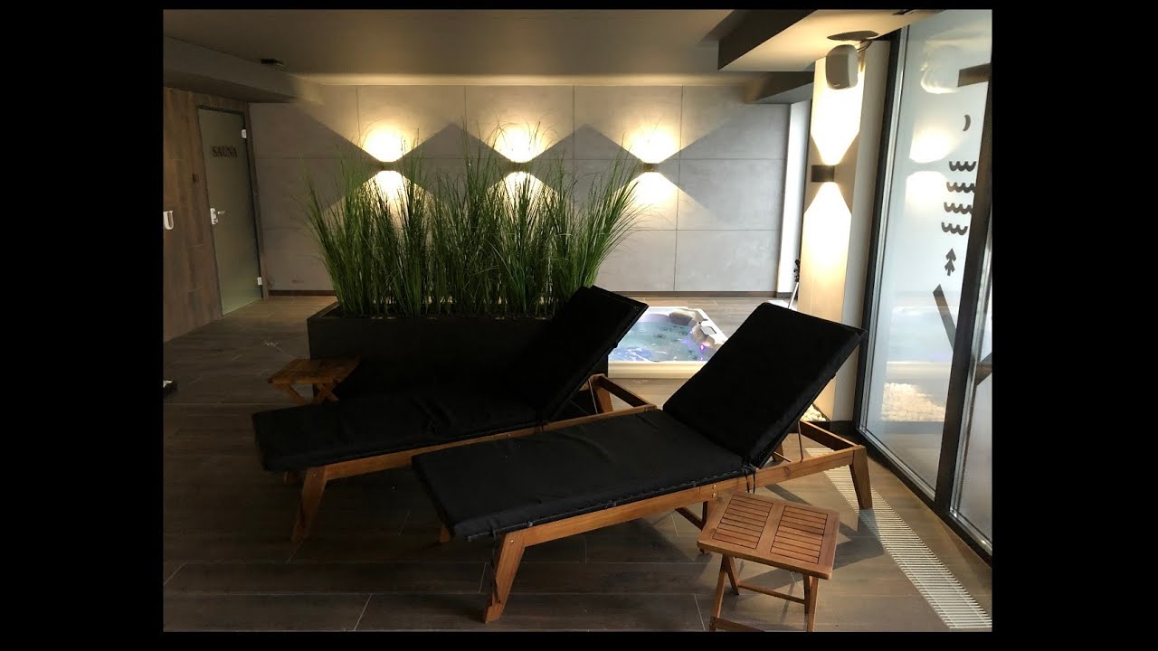strefę wypoczynku, leżaki, basen, jacuzzi i saunę.
