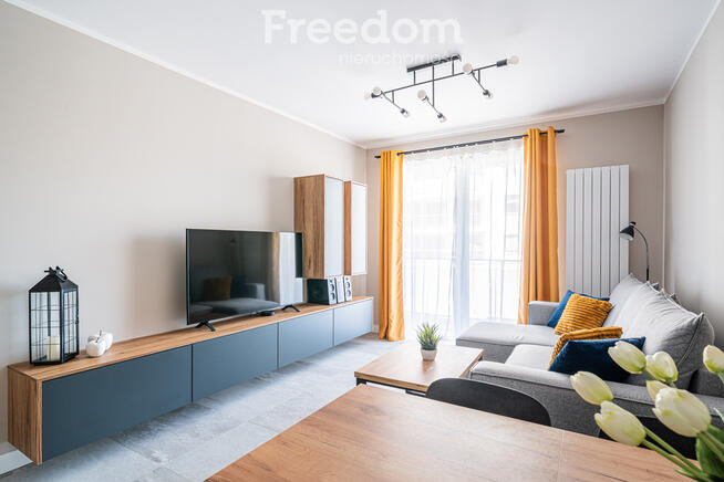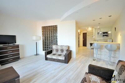 Jednopokojowy apartament, z łazienką i aneksem kuchennym. Słoneczny od rana, z dużymi przeszkleniami od wschodniej ...