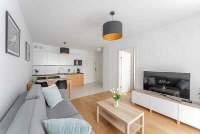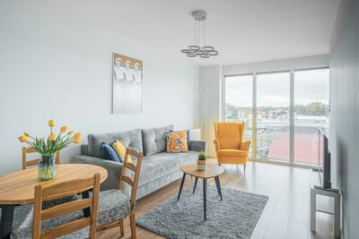 Elegancki apartament z salonem dziennym z TV, WiFi, aneksem kuchennym w pełni wyposażonym, sypialnią z łóżkiem ...