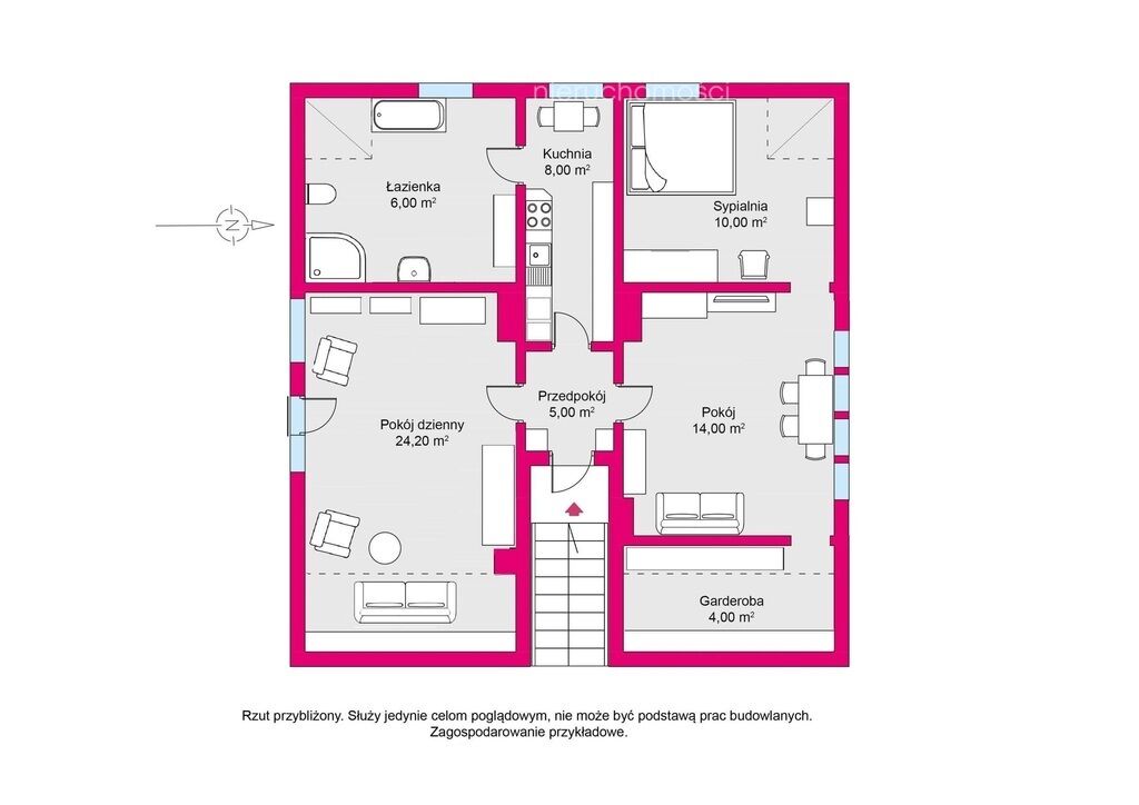 6 m2 , garderoby o pow. 4 m2 i przedpokoju o pow. 5 m2, bezpośrednio