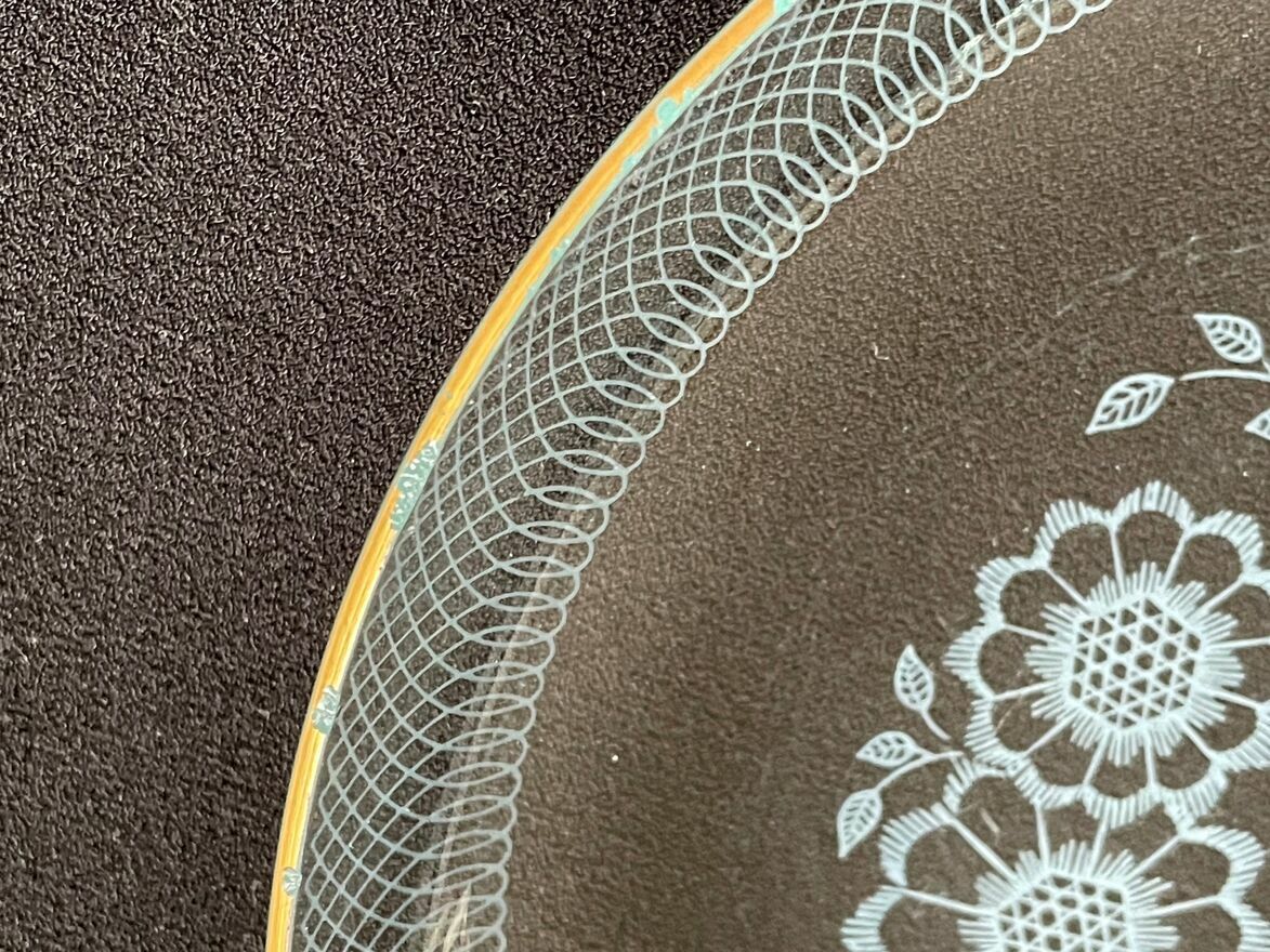 Dzień dobry Państwu.Oferuję do sprzedaży stary talerzyk / podstawek brytyjskiej znanej firmy Chance Glass. Bez pęknięć i uszczerbień. Złocone obrzeże.