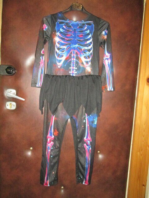 Sprzedaję strój piratki , czy tez szkieletora na 128 cm / rozmiar na metce. dl. rękawów - 45 cm dł. nogawki od krocza ...