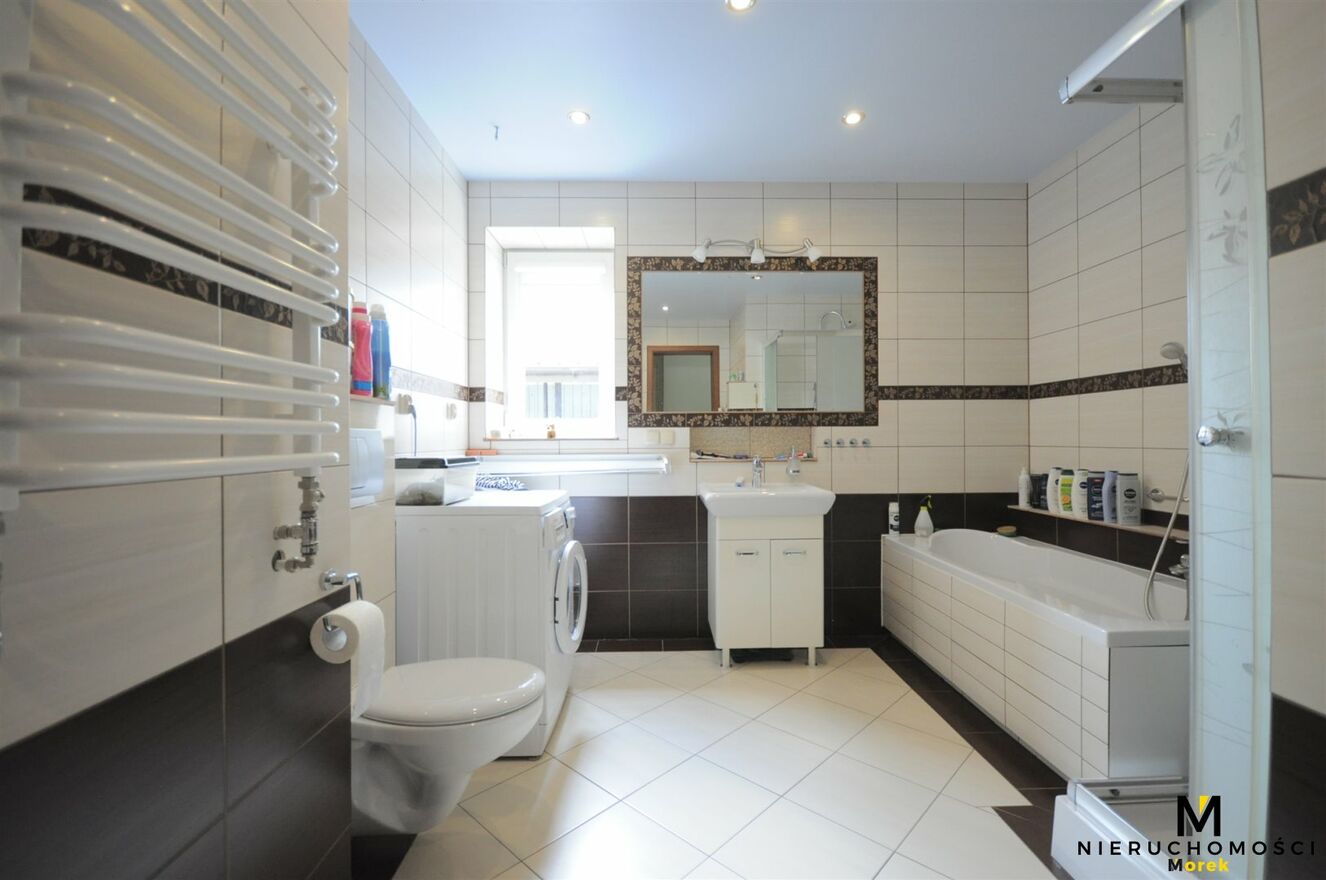 Na parterze mieszkanie dla właścicieli składające się z trzech dużych pokoi, oddzielnej kuchni, łazienki, WC kotłowni, i garażu z bramą elektryczną.