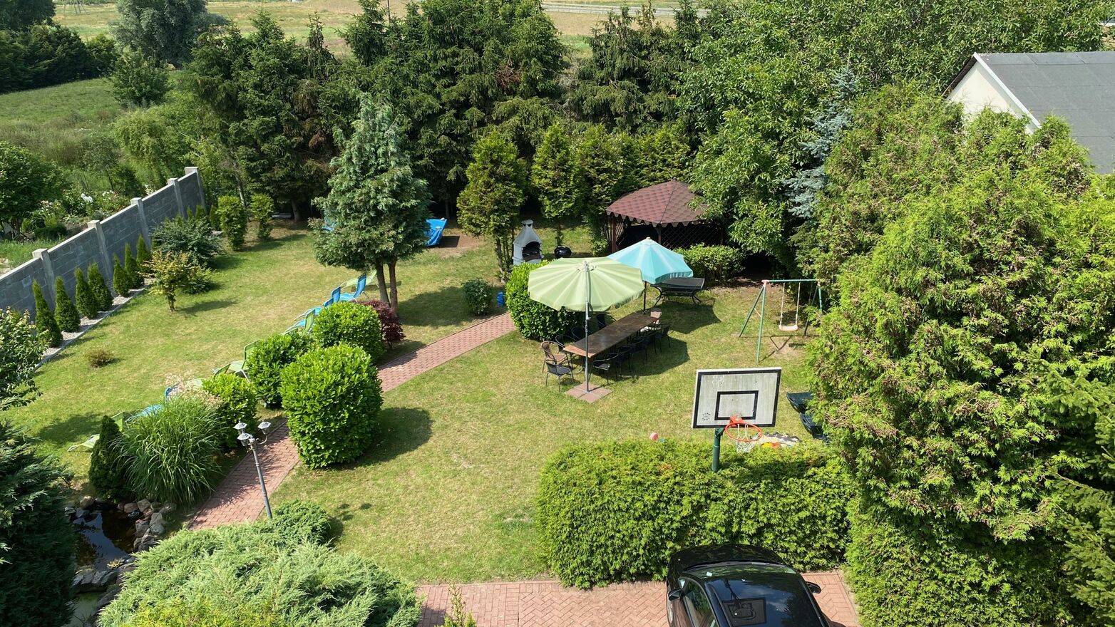 Dodatkowo na działce jest letnia altana, grill i oczko wodne.