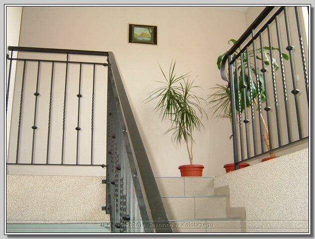 Schody - terakota, balustrady metalowe,