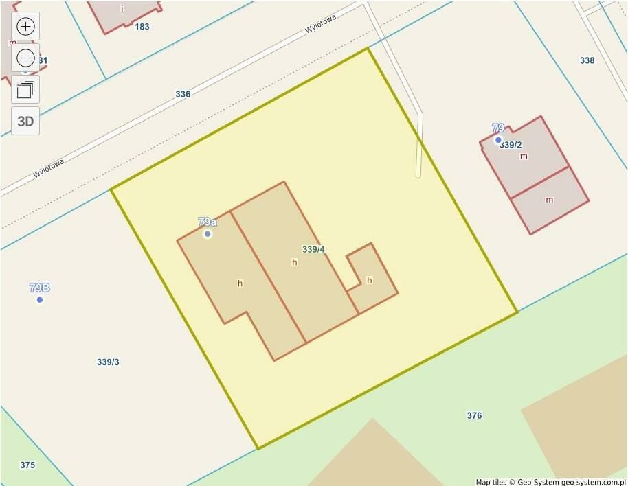 Działka zabudowana jest budynkiem handlowo-usługowym, murowanym, parterowym o pow. 380 m2.