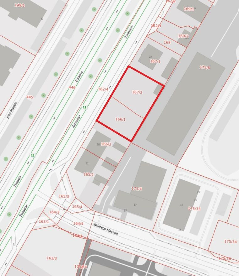 TOP LOKALIZACJA działka przy głównej ulicy, idealna pod sklep, siedzibę firmy, magazyn czy hale produkcyjną.Kołobrzeg ul. Żurawia na sprzedaż dwie działki budowlane o nr 166/1 i 167/2 o łącznej powierzchni 894 m2 (pow. 378 m2 i pow. 516 m2)