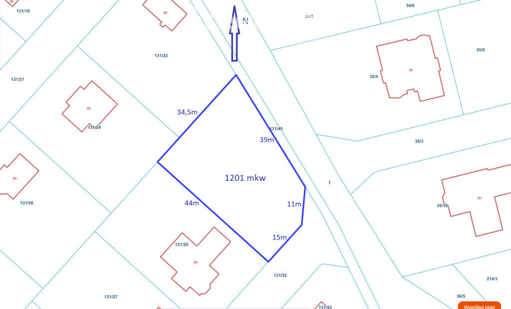 Działka posiada powierzchnię 1201 mkw, jest to teren płaski w