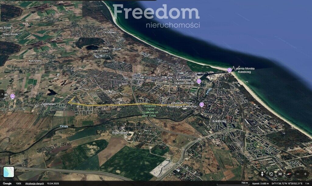 Zieleniewo gmina Kołobrzeg). Wzdłuż działki przebiegają wszystkie