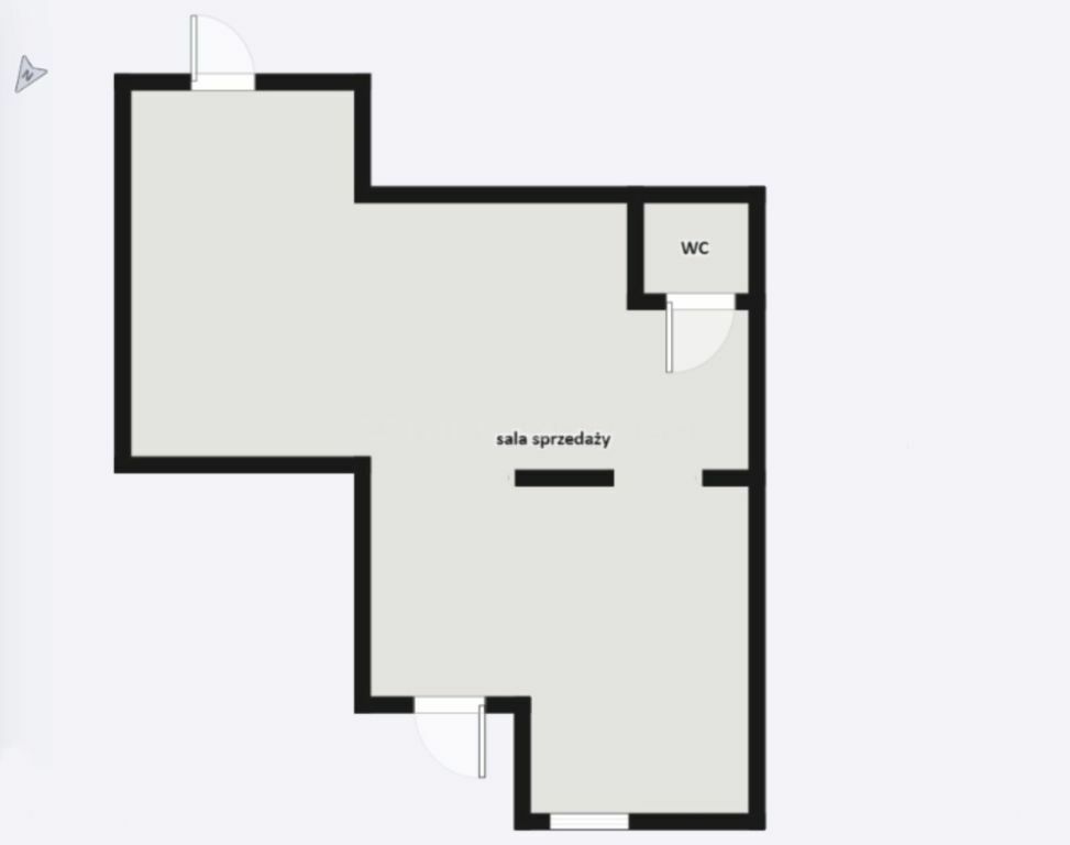Posiada salę sprzedaży, łazienkę z wc i witrynowe okna. Przy wejściu jest krata zabezpieczająca. Wysokość pomieszczeń to 3,5 metra.
