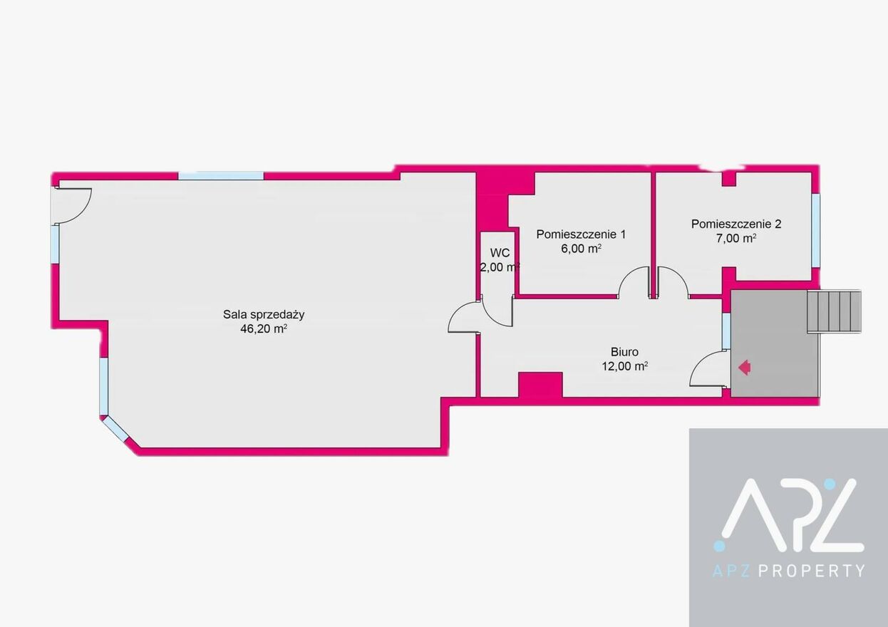 Lokal usługowy o łącznej powierzchni 73,19 m składa się z następujących pomieszczeń: