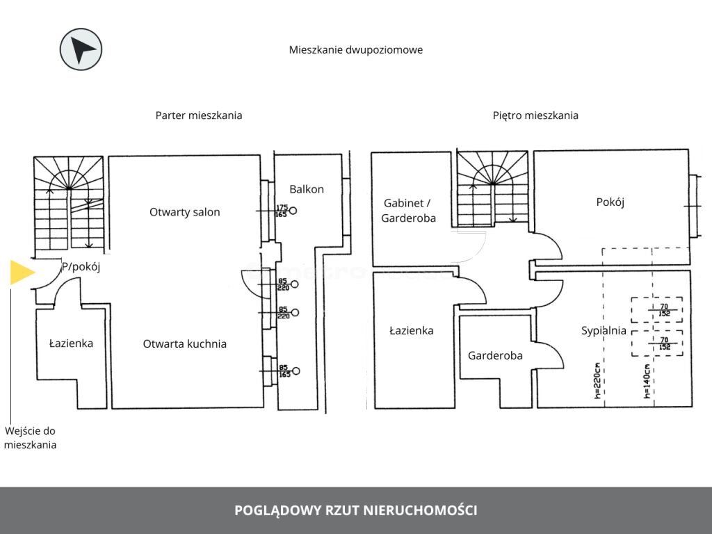 - Dwupoziomowy układ funkcjonalny, z wyraźnym podziałem na strefy dzienne i prywatne
