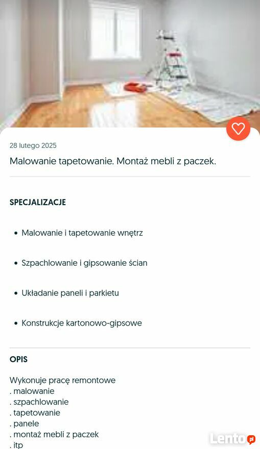 Malowanie, tapetowanie, montaż mebli z paczek, pracę wykończeniowe itp.Sprawdź zainteresowanie tym ogłoszeniem