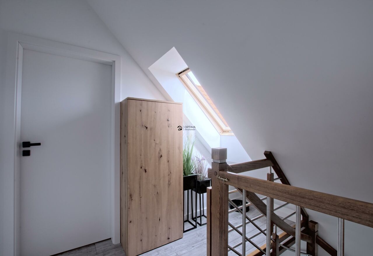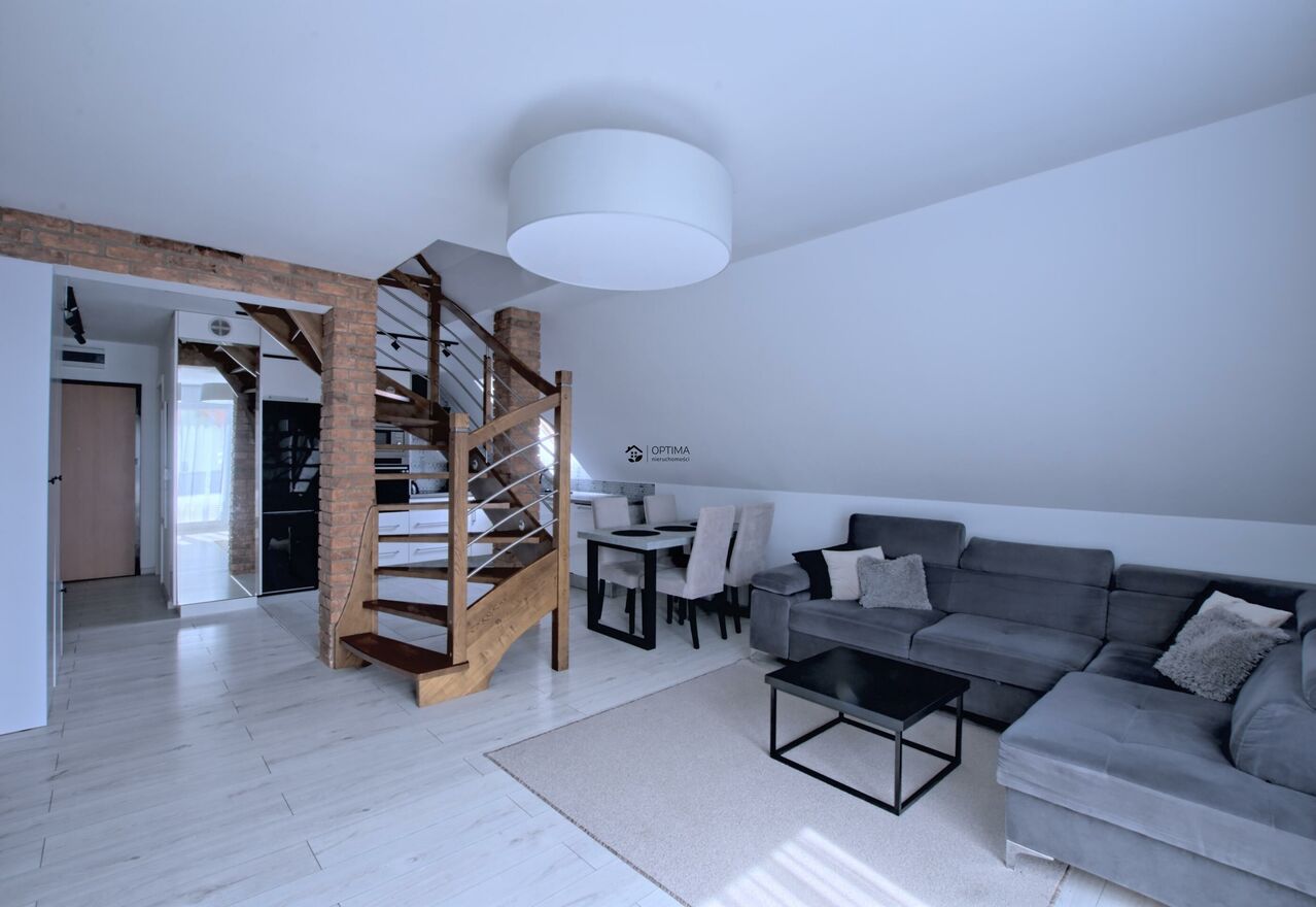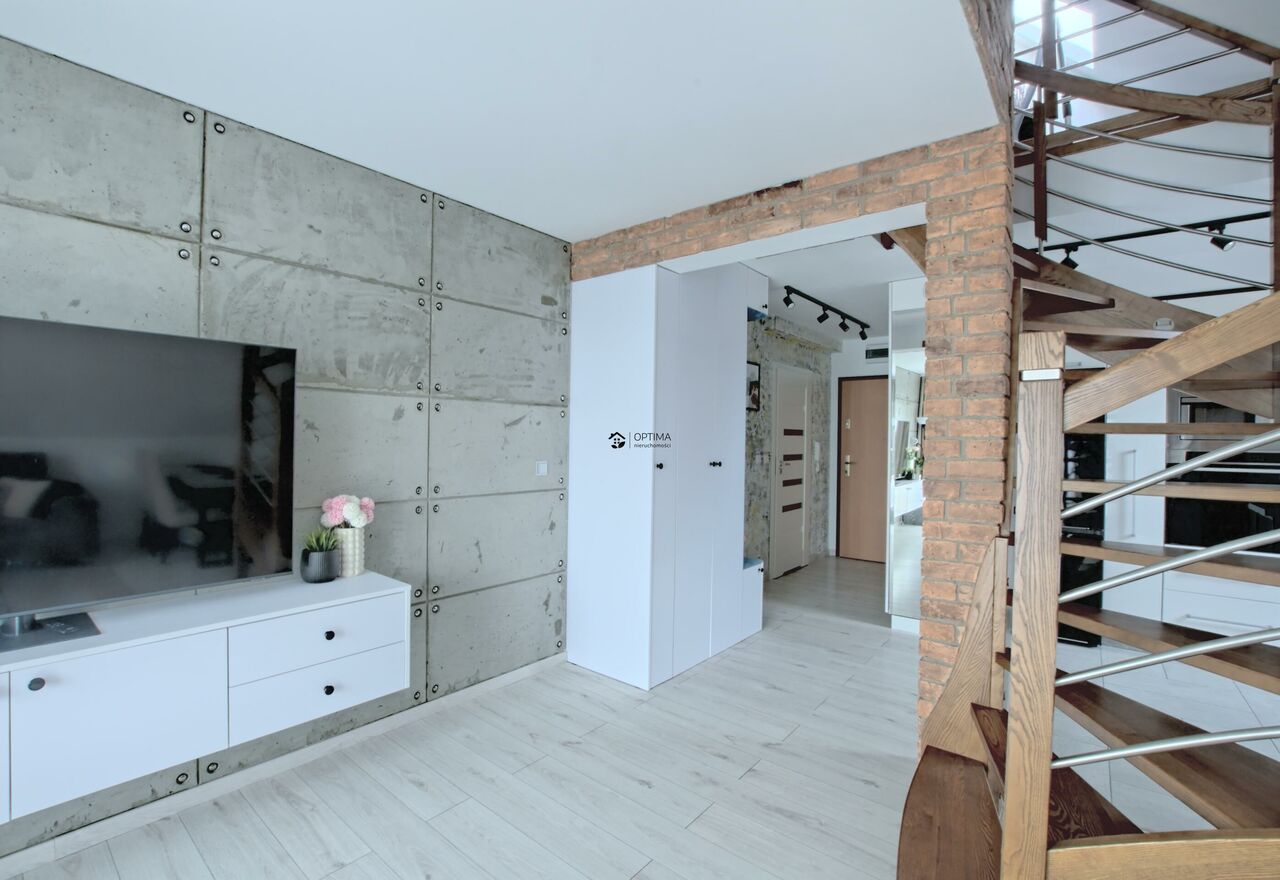 Mieszkanie dwustronne: okna pierwszego poziomu mają ekspozycję południowo wschodnią i południową, natomiast pokoje na drugim poziomie ekspozycję zachodnią.