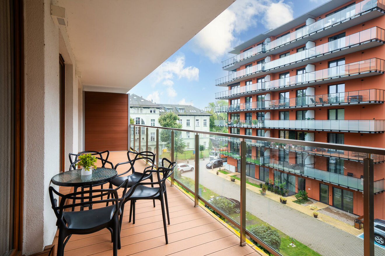 Osiedle otacza piękny park ze starodrzewem, który pełni rolę naturalnej bariery dźwiękowej, pozwalając cieszyć się spokojem i ciszą mimo położenia w centrum miasta. Spacerując po wspaniałym bulwarze nad rzeką Parsętą, możemy wziąć głęboki oddech, zrelaksować się i delektować harmonią natury.