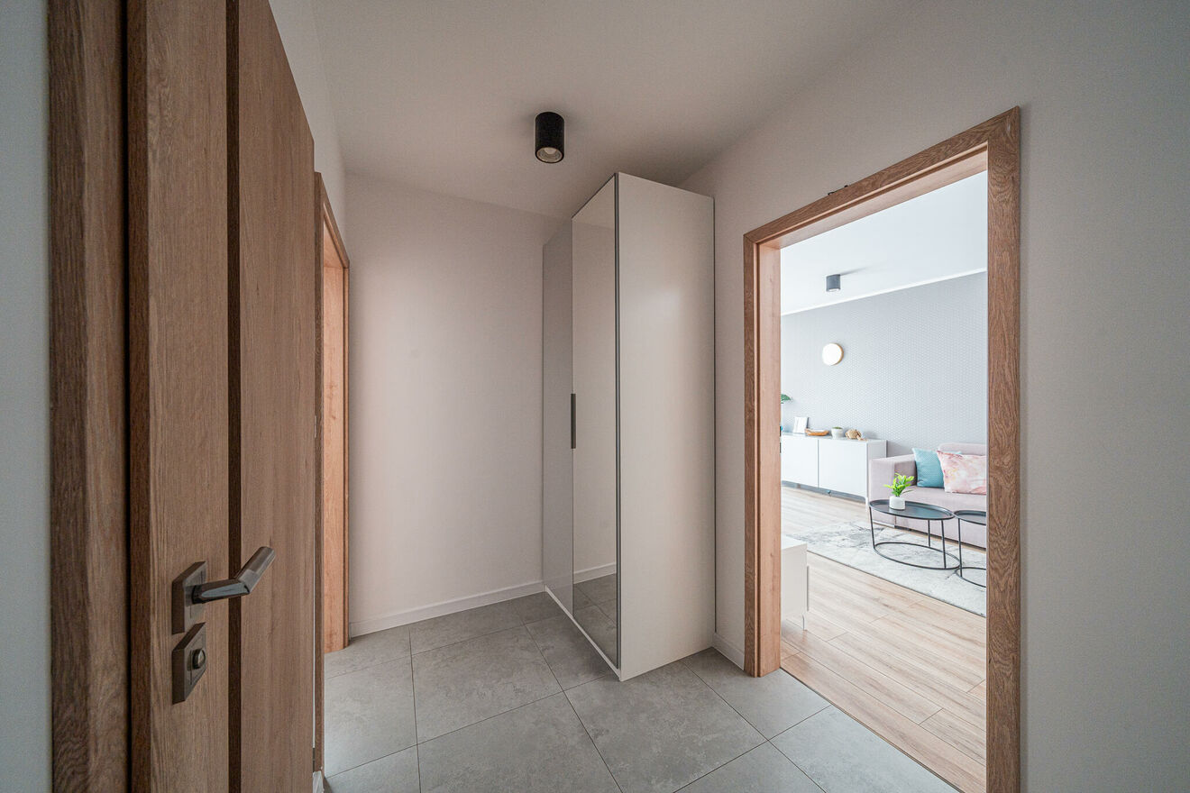 -przedpokoju , wyposażony w dużą szafę z lustrem