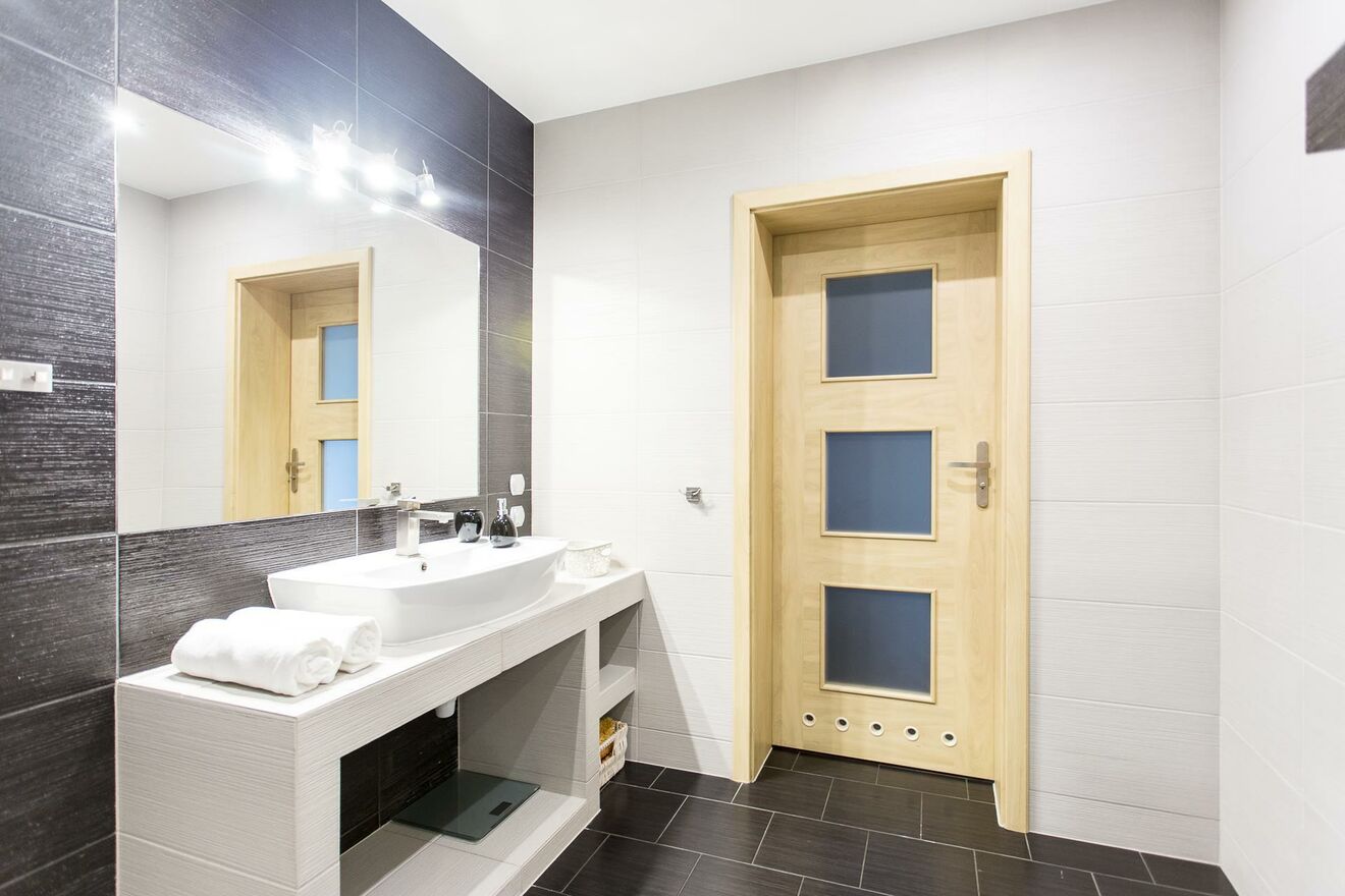 W całym mieszkaniu zastosowano wysokiej klasy materiały budowlane.