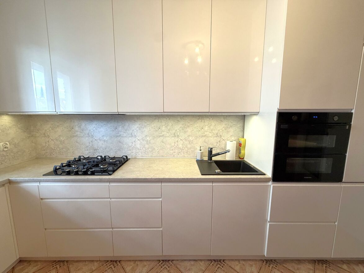 kuchnia- osobne pomieszczenie, nowoczesna zabudowa, sprzęt AGD w zabudowie, jasne, schludne meble kuchenne,