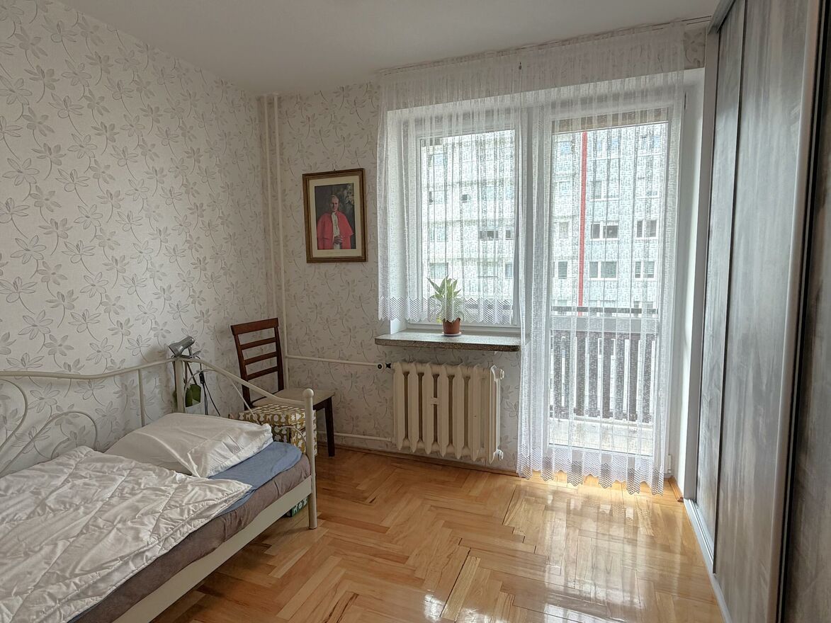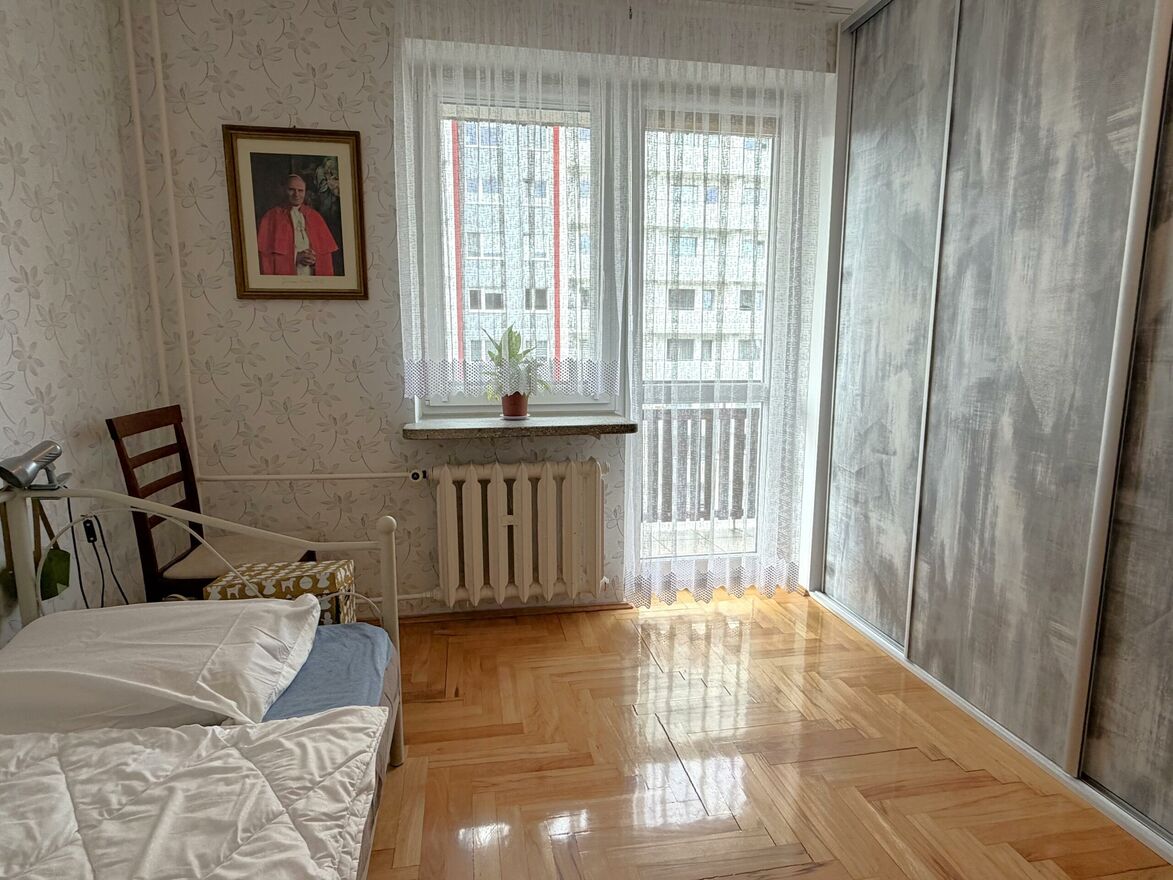dwie sypialnie, jedna z balkonem od strony zachodniej, na podłogach położony został parkiet, w jednym z pokoi znajduje się duża szafa w zabudowie.