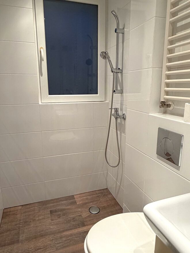 - łazienka z wc z oknem ( prysznic odpływ liniowy)