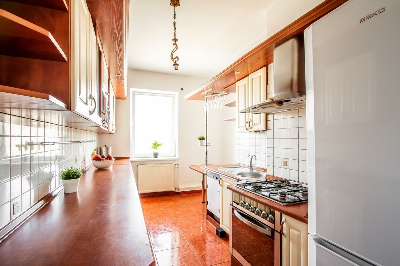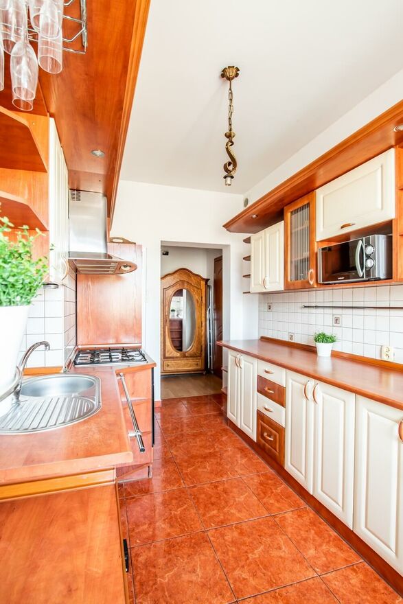 Mieszkanie o bardzo dobrym układzie funkcjonalnym, duże samodzielne pokoje o pow. 24, 23 i 20 mkw wysokie 2,90 m, przedpokój o pow. około 6 m2, łazienka duża ,widna o pow. około 6,5 mkw wraz z WC. Kuchnia o pow. 9 m2 - widna z oknem. W salonie gustowny kominek.