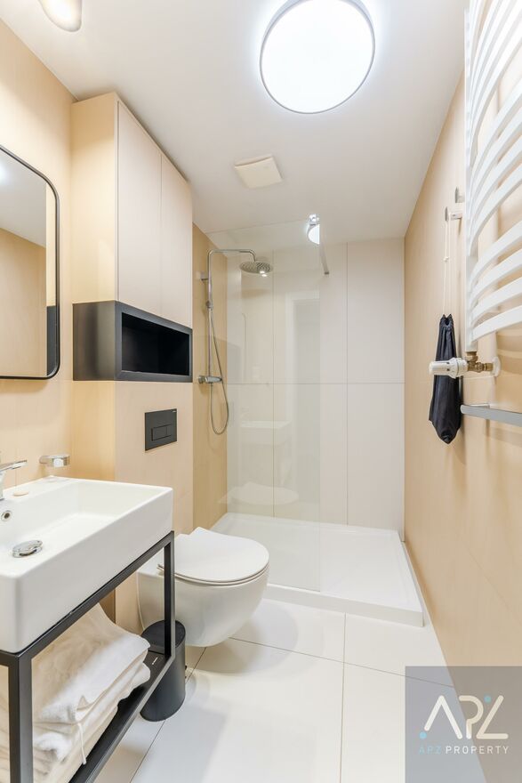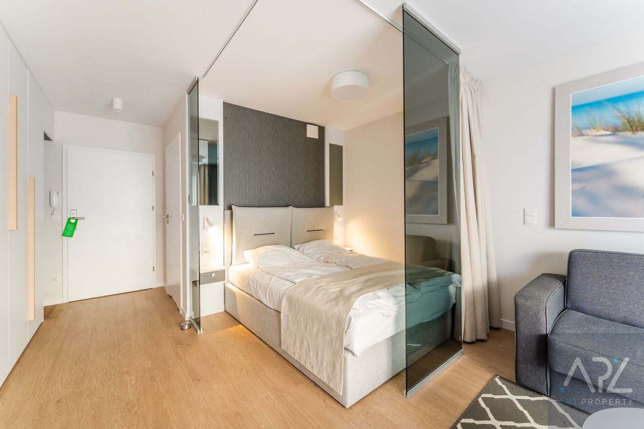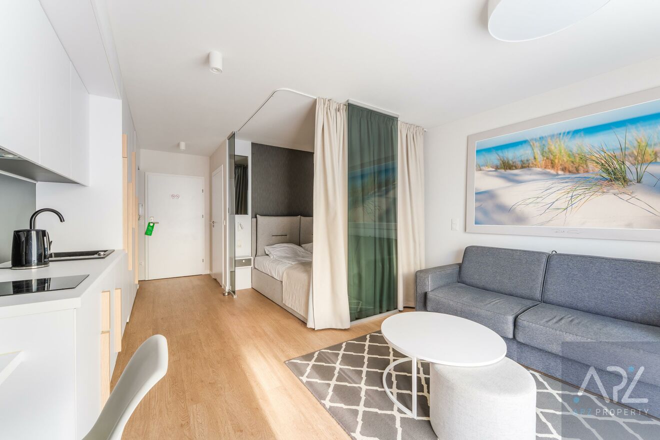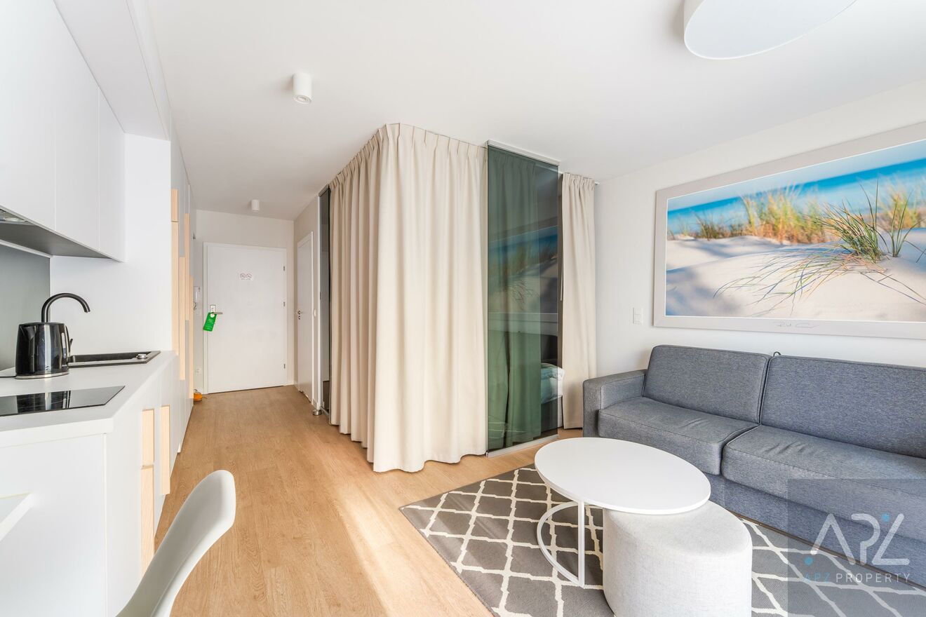 Mieszkanie jest w pełni wyposażone w najwyższej klasy meble hotelowe oraz sprzęty RTV i AGD, a ze względu na lokalizacje apartament idealnie nadaję się jako inwestycja pod wynajem krótkoterminowy lub całoroczny, ale także na potrzeby własne!