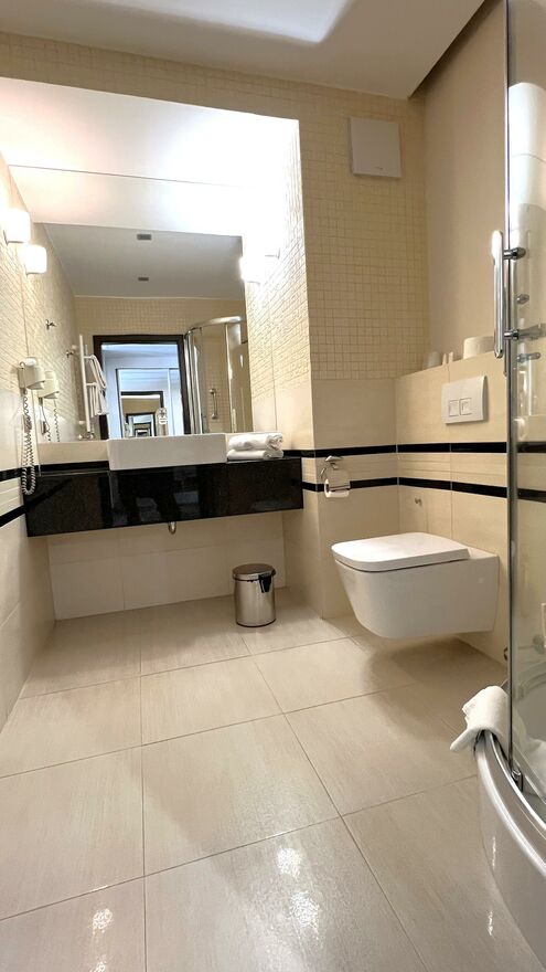 W hotelu znajdują się cztery szybkobieżne windy, całodobowa recepcja oraz lokale handlowe.