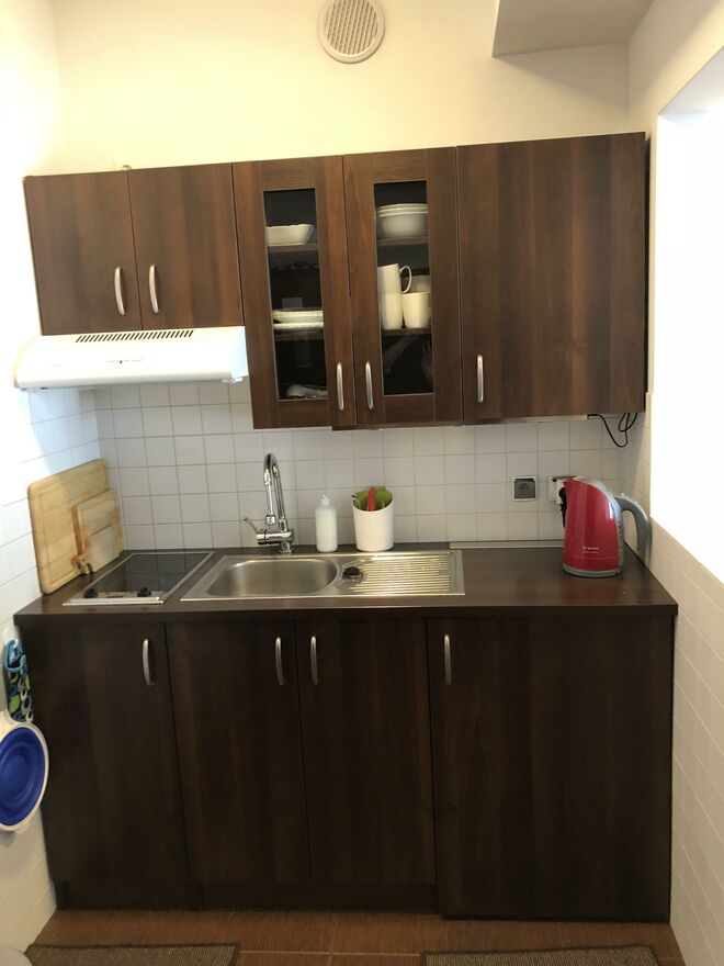 - duży pokój dzienny z aneksem kuchennym z którego jest wyjście na loggię