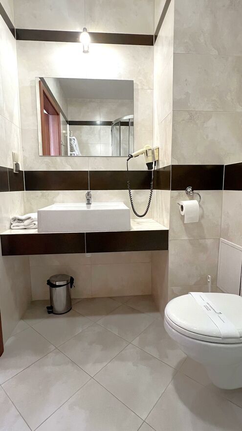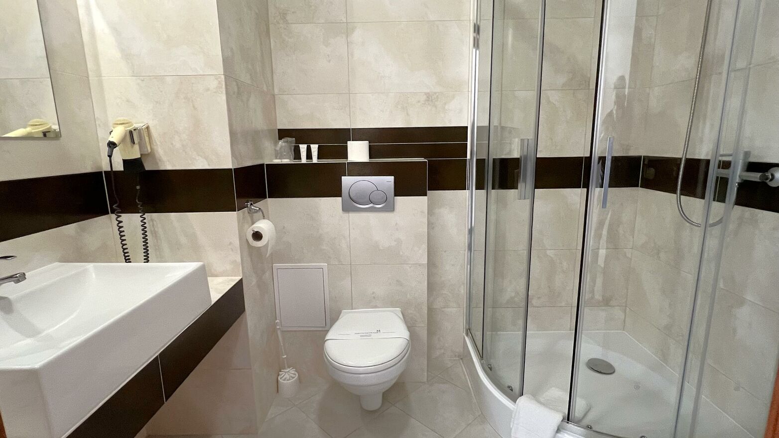 armatura : kabina prysznicowa, miska ustępowa , umywalka wisząca).