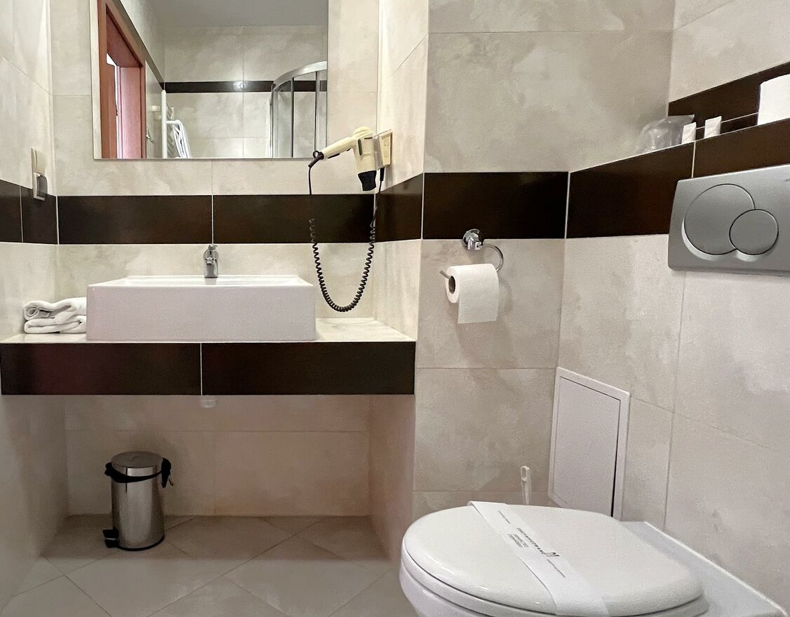 - Łazienka z wc, (na podłodze terakota, na ścianach glazura,