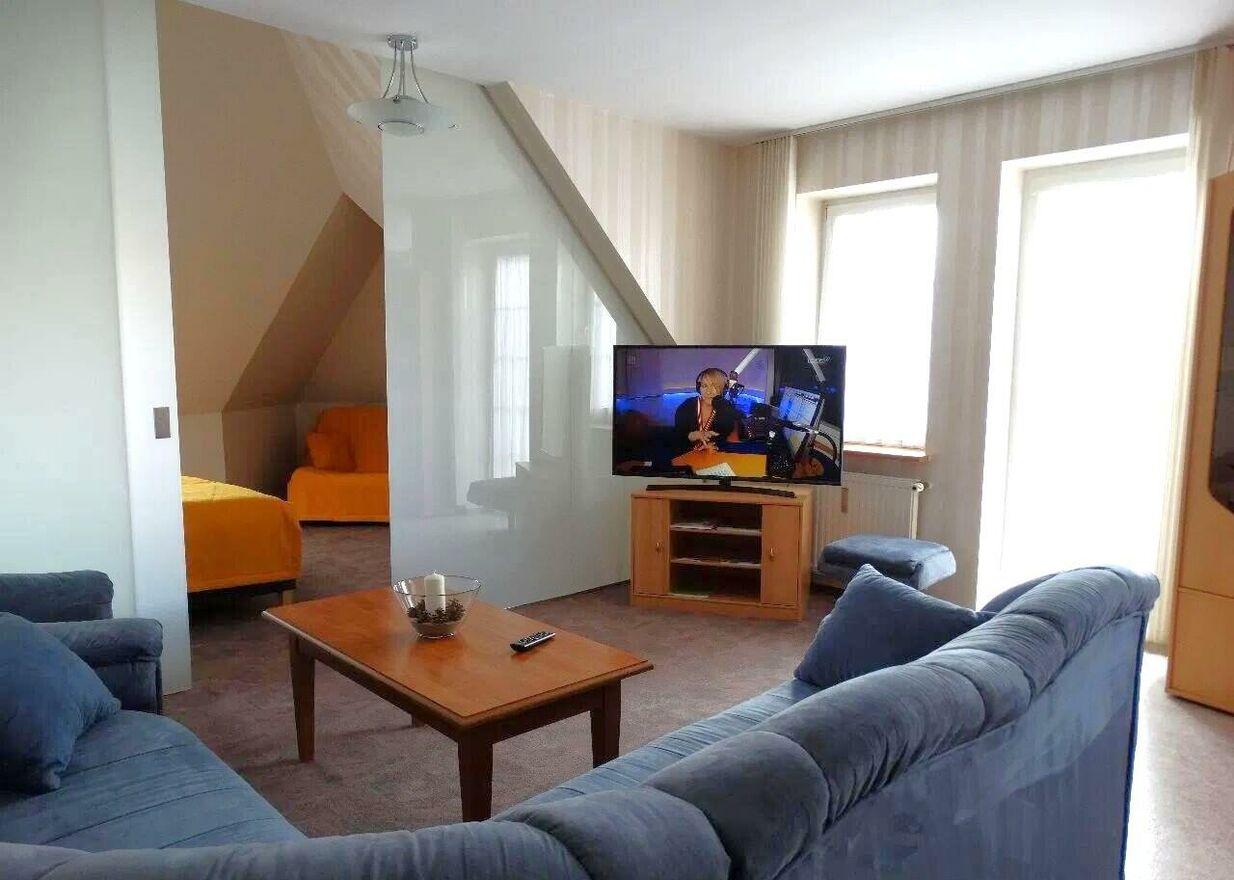 - Przestronnego pokój dziennego z wyjściem na balkon (na podłodze wykładzina)