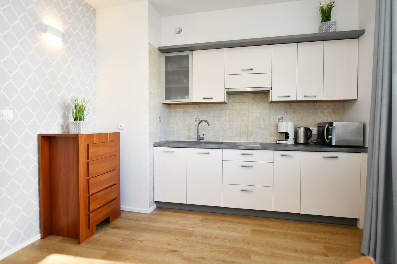 Apartament wykończony w podwyższonym standardzie, w pełni umeblowany i wyposażony sprzedawany wraz z całym wyposażeniem (jak na zdjęciach).