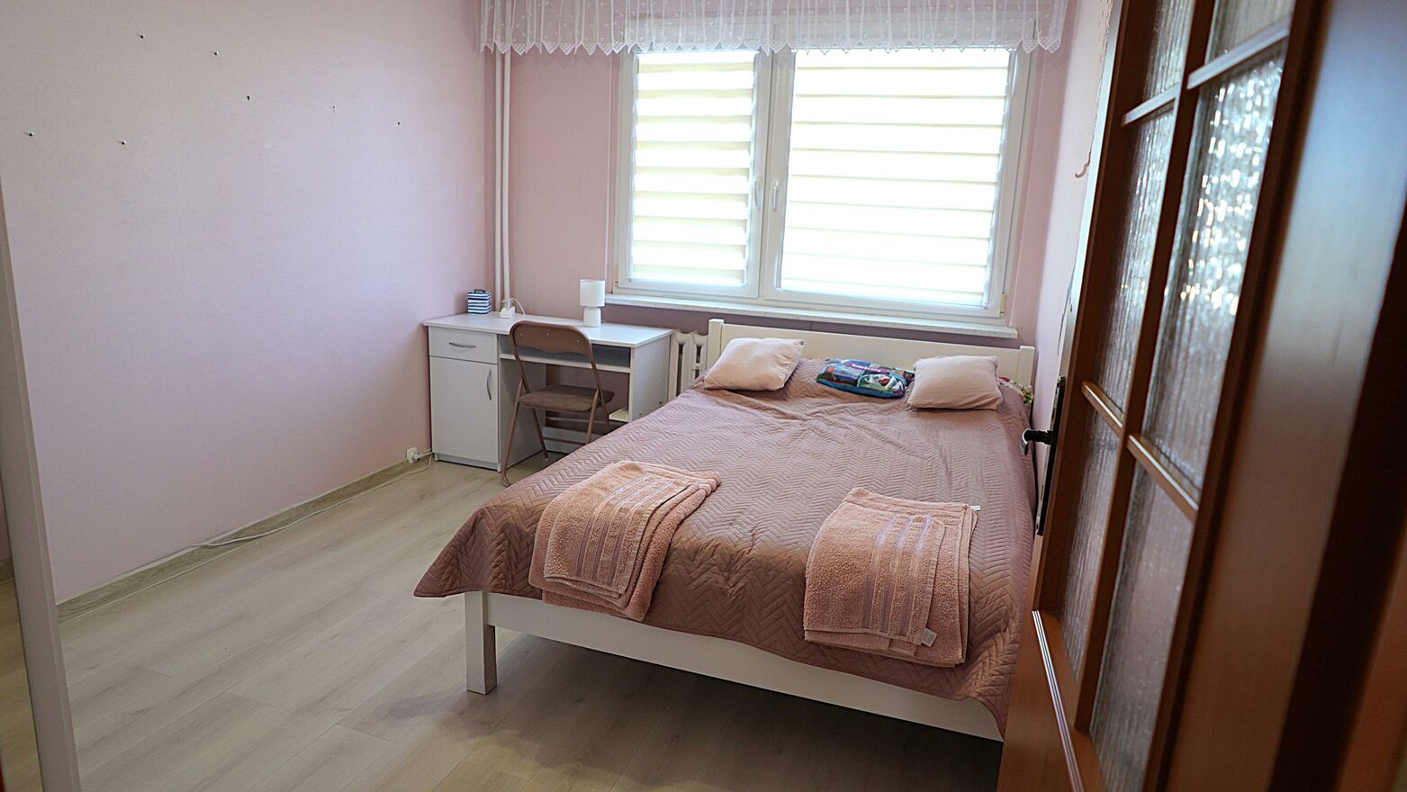 2 POKÓJ - sypialnia, podłoga - panele, ściany - gładź gipsowa , szafa