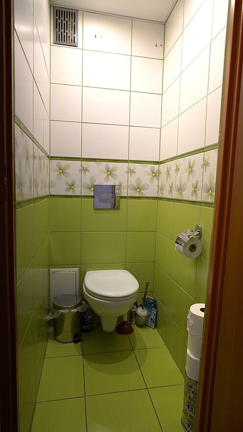 WC - podłoga - terakota, ściany - glazura, ( misa ustępowa stojąca)