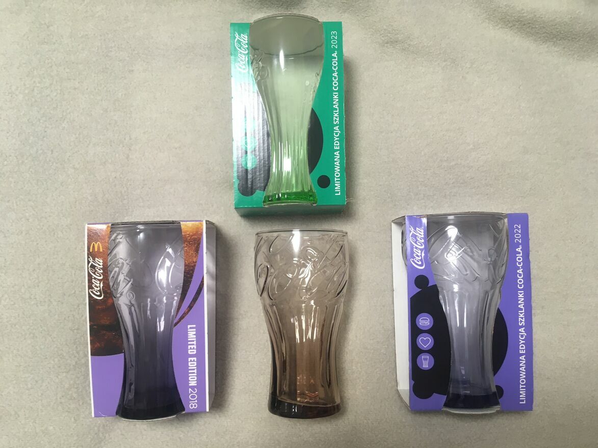Dzień dobry Państwu.Oferuję do sprzedaży 4 szklanki Coca – Cola, z limitowanych edycji. Nowe. Jedna bez opakowania, rozdarła się. Stan bardzo dobry, widoczny na dokładnych fotografiach. Bez wyszczerbień i ukruszeń. Pochodzi z mojej prywatnej kolekcji. Posiadam je powyżej 6 miesięcy. Polecam do nabycia dla kolekcjonerów, uzupełnienia zbioru lub dla miłośników gatunku. Wysyłka możliwa. W razie pytań proszę o telefon lub pisać.