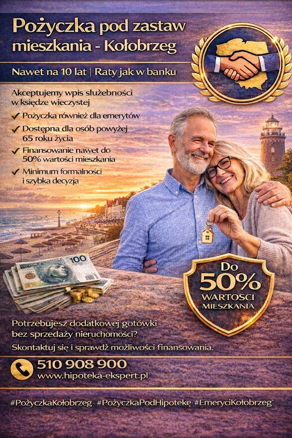 Pożyczka pod zastaw mieszkania Kołobrzeg|10 lat| Jak w banku