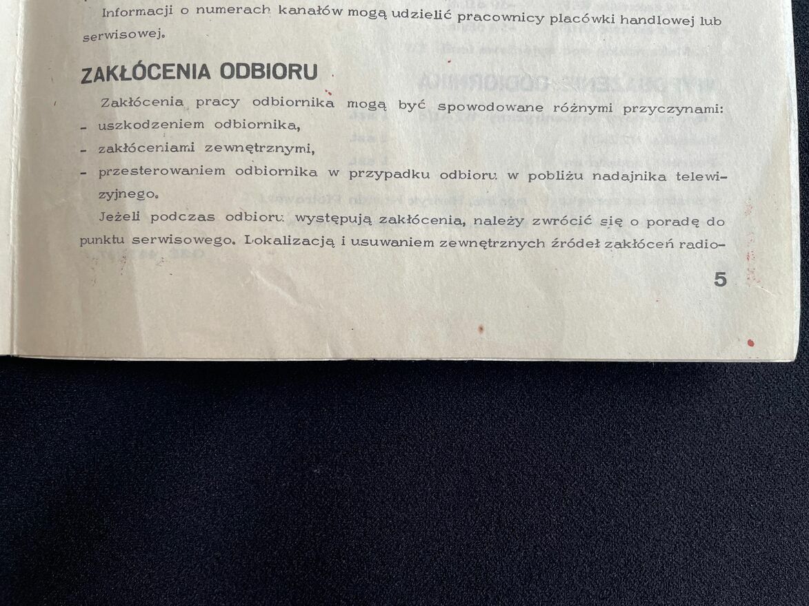 Dzień dobry Państwu.Oferuję do sprzedaży rzadko spotykany na egzemplarz rynku kolekcjonerskim. To instrukcja obsługi i schemat ideowy odbiornika telewizyjnego z czasów PRL-U Neptun 171. Telewizor był produkowany przez Unimor Gdańskie Zakłady Eletroniczne. Oryginał, nie kserokopia. Przysłowiowa DTR-ka niezbędna dla miłośników dawnego sprzętu. Oprócz schematu ideowego, gdzie znajdują się wartości napięć i wykresy oscyloskopu, ułatwiające lokalizację usterek jest tradycyjna instrukcja obsługi. Informacje jak regulować parametry. Krótko mówiąc niezbędna skarbnica wiedzy dla pasjonata dawnej polskiej elektroniki jak i fachowców od naprawy sprzętu. Stan widoczny na fotografiach. Niespotykana na aukcjach. Stan bardzo dobry jak na blisko kilkadziesiąt lat. To rarytas dla kolekcjonera. Wysyłka możliwa. W razie pytań proszę dzwonić lub pisać. Może ktoś ma taki odbiornik i brakuje mu instrukcji do kompletu? Polecam do nabycia.