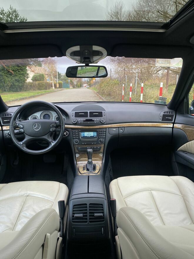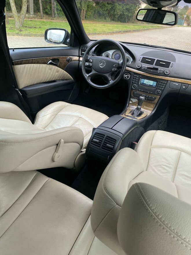 Mercedesa E klasę W211 200 T Kombi Avantgarde po liftingu z silnikiem benzynowym 1.8 Kompresor o mocy 184 KM oraz automatyczną skrzynią biegów. Rok produkcji 2006, pierwsza rejestracja 28.04.2006 r. Samochód sprowadzony z Niemiec zarejestrowany 19.08.2010 w kraju, jestem jedynym użytkownikiem. Auto w bardzo dobrym stanie technicznym i wizualnym. Silnik pracuje równomiernie, rozrząd w 100% wymieniony przy około 90 tys. km, automatyczna skrzynia biegów pracuje płynnie, olej wymieniony przy 90 tys. km, oraz przy około 170 tys. km. Jest to samochód w którym czuje się przyjemność z komfortowej jazdy zarówno przy codziennych jak i dalszych trasach, to klasa PREMIUM biorąc pod uwagę inne modele samochodów. Zawieszenie sztywne bez luzów i stukania. Oryginalny potwierdzony przebieg 179,100. Badanie techniczne ważne do 21.03.2026r. OC do 18.08.2026 r. Auto jest zarejestrowane i opłacone pozostaje tylko przerejestrować na siebie.