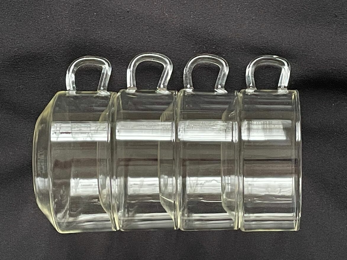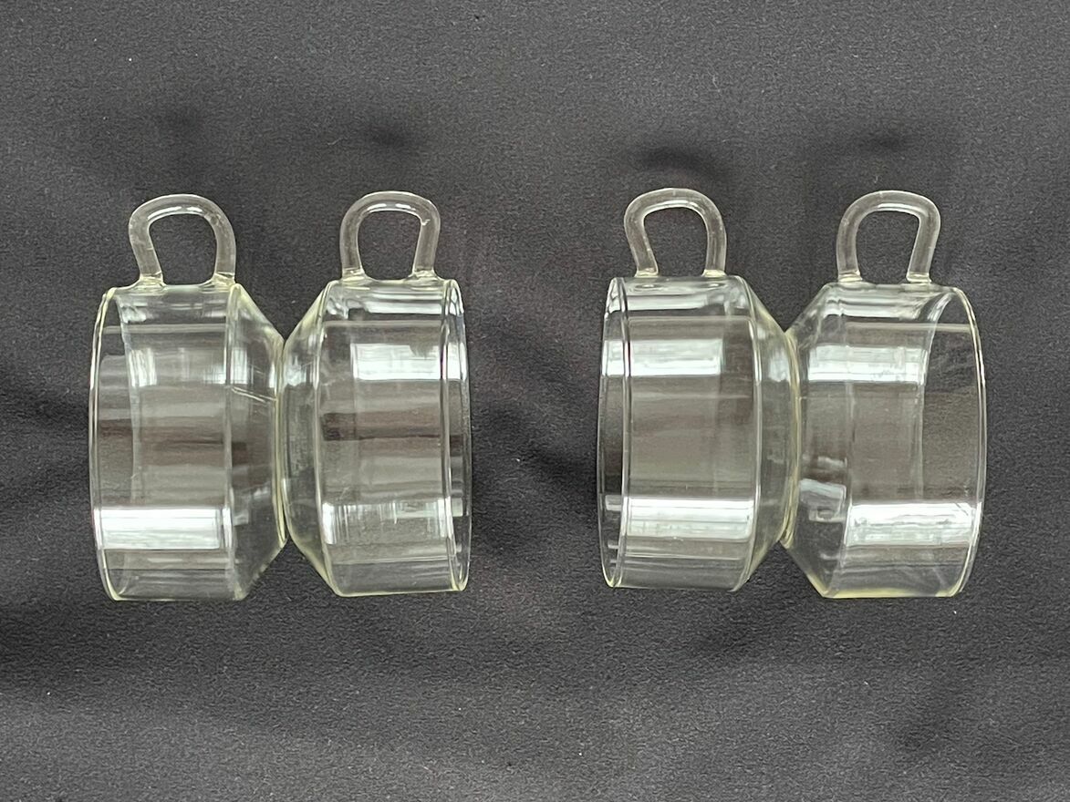 Dzień dobry Państwu.Oferuję do sprzedaży 4 filiżanki szklane Jenaer Glas. To bardzo utytułowana marka niemieckiego producenta szkła kontynuatora Zwiesel Kristallglas, którego historia sięga początku XX wieku. Sygnowane. Pojemność 150 ml. Stan bardzo dobry. Filiżanki bez pęknięć i uszczerbień. Podstawki bez pęknięć i uszczerbień. Stan widoczny na dokładnych fotografiach. To klasyka dawnego wykonania i niezwykle poszukiwane przedmioty do delektowania się np. herbatą w gronie przyjaciół lub znajomych. Wysyłka możliwa. Będą bezpiecznie zapakowane. To okazja dla kolekcjonera, miłośnika vintage, do uzupełnienia własnej np. potłuczonej kolekcji lub zwyczajnie na zapas. Znalezienie takich egzemplarzy jest niebywale trudne. Cena za komplet. W razie pytań proszę dzwonić lub pisać. Polecam do nabycia.