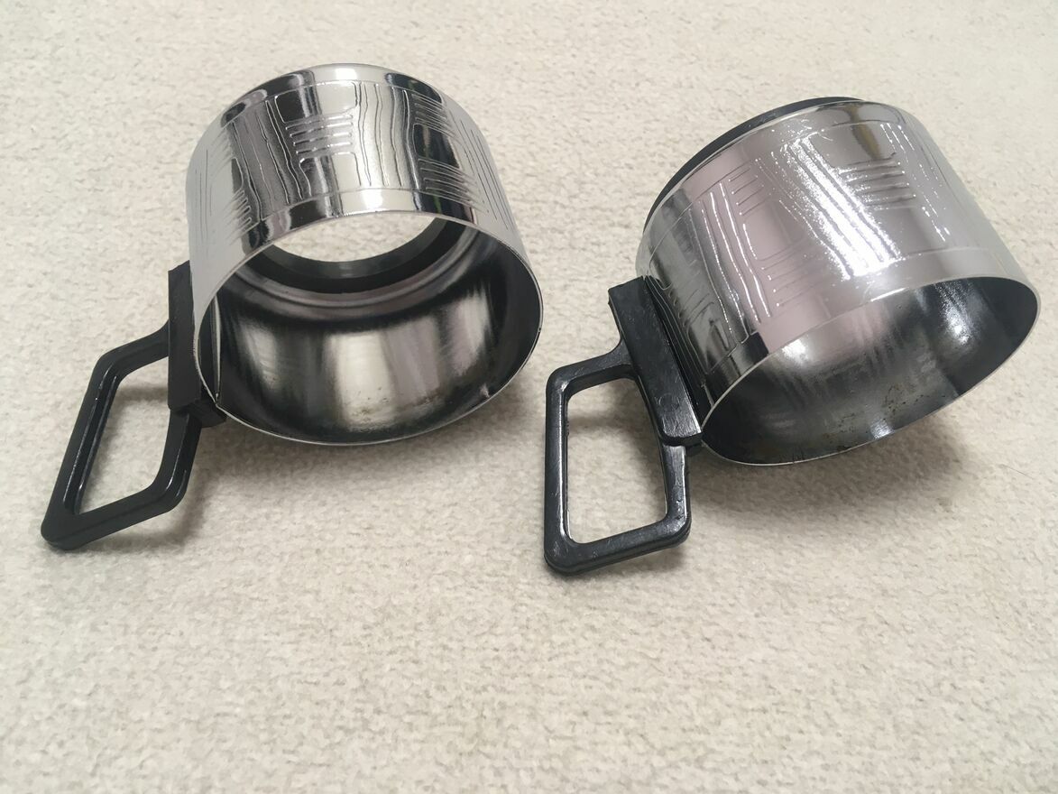 Dzień dobry Państwu.Oferuję do sprzedaży dwa koszyczki z PRL-u do klasycznych szklanek. Rzadkie egzemplarze, na tą chwilę jedyne takie na aukcji. Uchwyty trzymają się pewnie, nie są pęknięte. Stabilne. Używane, w dobrym stanie, widocznym na dokładnych fotografiach. W środku koszyczków widoczne otarcia, proszę pamiętać że mają wiele lat. Szklanki bez uszczerbień. Oryginalne wykonanie polegające na połączeniu tworzywa i metalu. Najczęściej spotyka się jednolite z tworzywa lub metalu. Polecam do uzupełnienia zbioru dla kolekcjonera i nie tylko. Wysyłka możliwa. W razie pytań proszę dzwonić lub pisać.